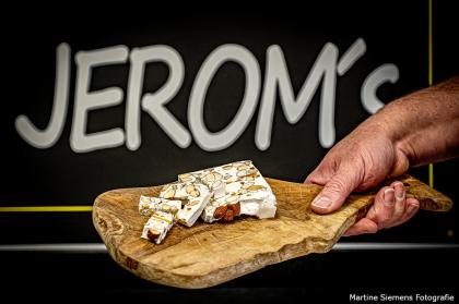 Nougaterie Jerom ’s is de enige echte nougaterie in Nederland. Een prachtige plek in Vierakker, waar je als bezoeker ondergedompeld wordt in de magie van het nougat/noga maken. Jerom laat je graag het productieproces van noga zien vanuit zijn nougaterie. De smaken worden met zorg samengesteld en de regionale ingrediënten zijn de handtekening van Jerom’s noga. Kom lekker langs en proef zelf van de verschillende soorten noga. In de gezellige winkel worden de heerlijke noga’s en andere delicate snoeperijen te koop aangeboden. Tevens is het mogelijk om geschenkpakketten op maat samen te laten stellen.